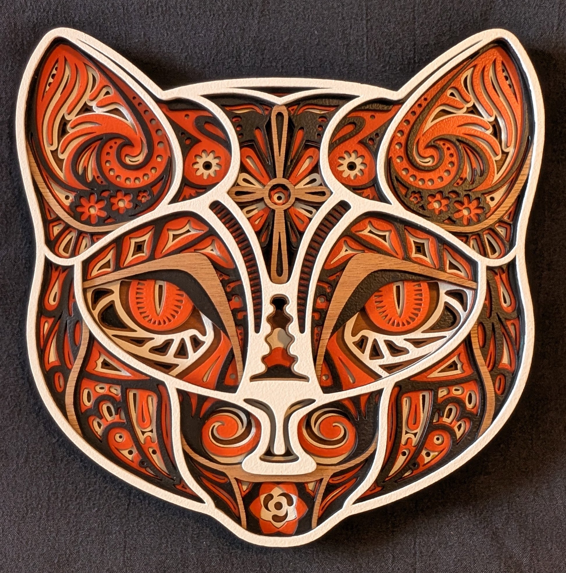 This charming wooden cat face wall art captures the playful spirit of a calico cat. Standing 12. inches tall and stretching 11.75 inches wide, it's sized perfectly for shelves, desks, or wall displays. Hand-crafted with attention to detail, the piece features distinctive facial characteristics that bring personality to any room. Ideal for cat lovers and those seeking unique home décor with rustic charm.